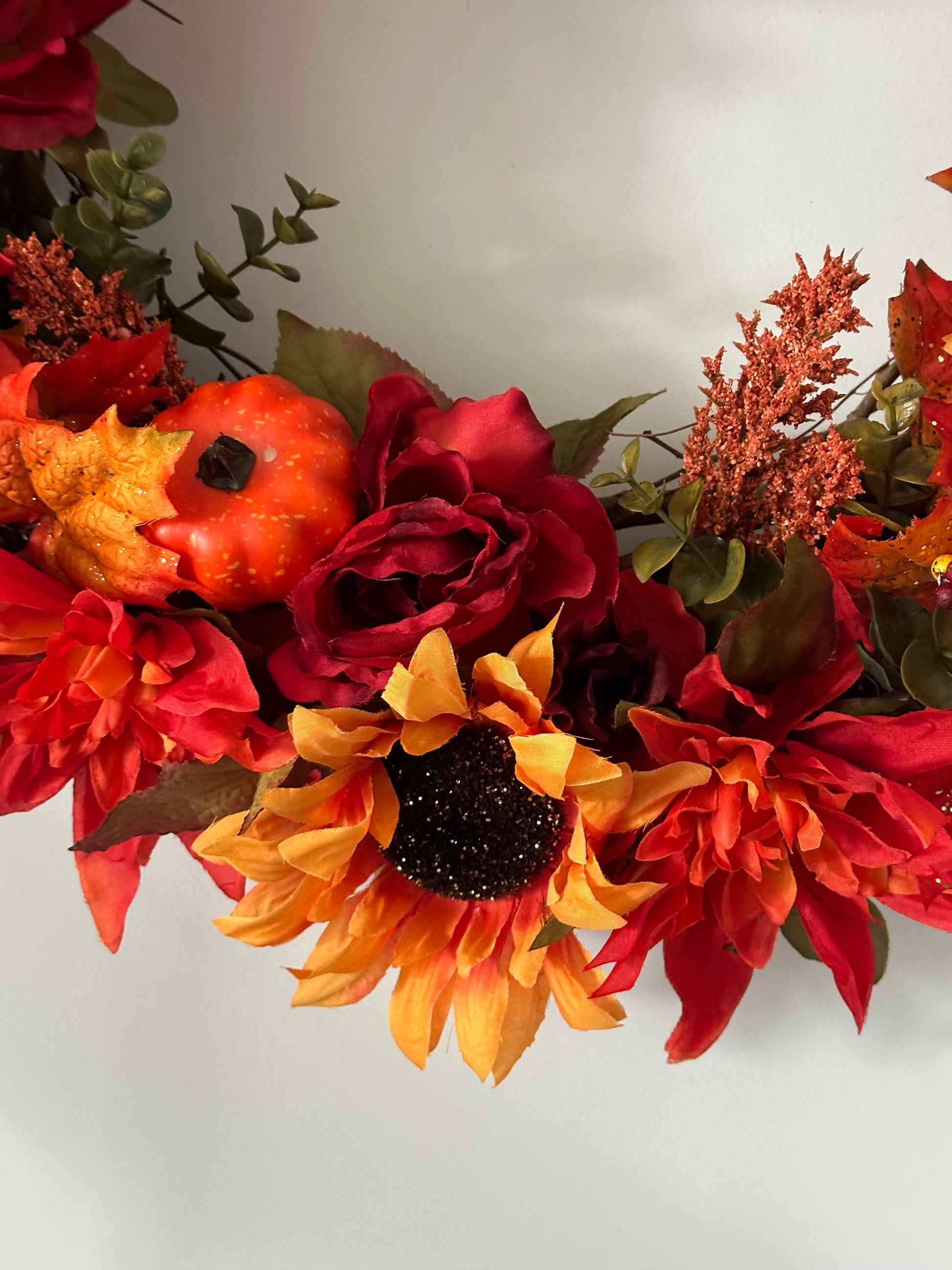 Fall Bright Colors Sunflower, Peony, and Rose (18" Wreath)